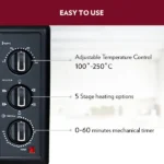 The adjustable temperature controls, long duration timer and 6-stage heating options ensure that you can use the OTG to cook whatever you like, whenever you like, and just the way you like it!