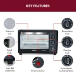 The Borosil Prima Pro 30L Oven Toaster Griller comes with convection heating to ensure efficient and even cooking, and a motorised rotisserie. Oven Toaster Griller is great for baking croissants, cookies, cakes, bread, pizzas, muffins, shashliks, and bakes – and it can even roast a whole chicken using the rotisserie feature! It comes with all the accessories you need – crumb tray, tray handle (so that you don’t need oven mitts), rotisserie handle, rotisserie axis, rotisserie fork and a recipe book with an array of delicious recipes!